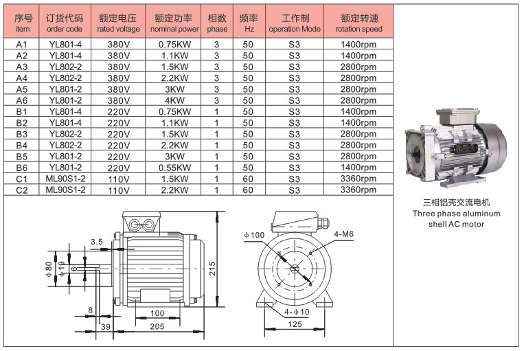 三相鋁殼交流電機